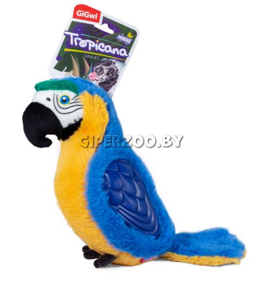 GiGwi TROPICANA SERIES Попугай с пищалкой большой – игрушка для собак с набивкой, дополнена высококачественным текстильным покрытием и искусственным мехом в комбинации с резиной.