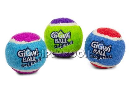 GiGwi BALL Originals Три мяча с пищалкой – игрушка для собак из теннисной резины с ворсистой поверхностью.