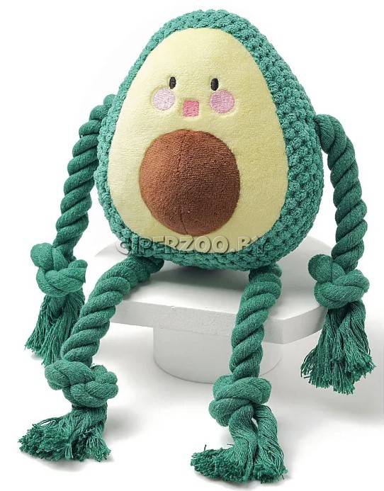 Mr.Kranch Игрушка для собак Авокадо — плюшевая игрушка с канатиками и пищалкой.