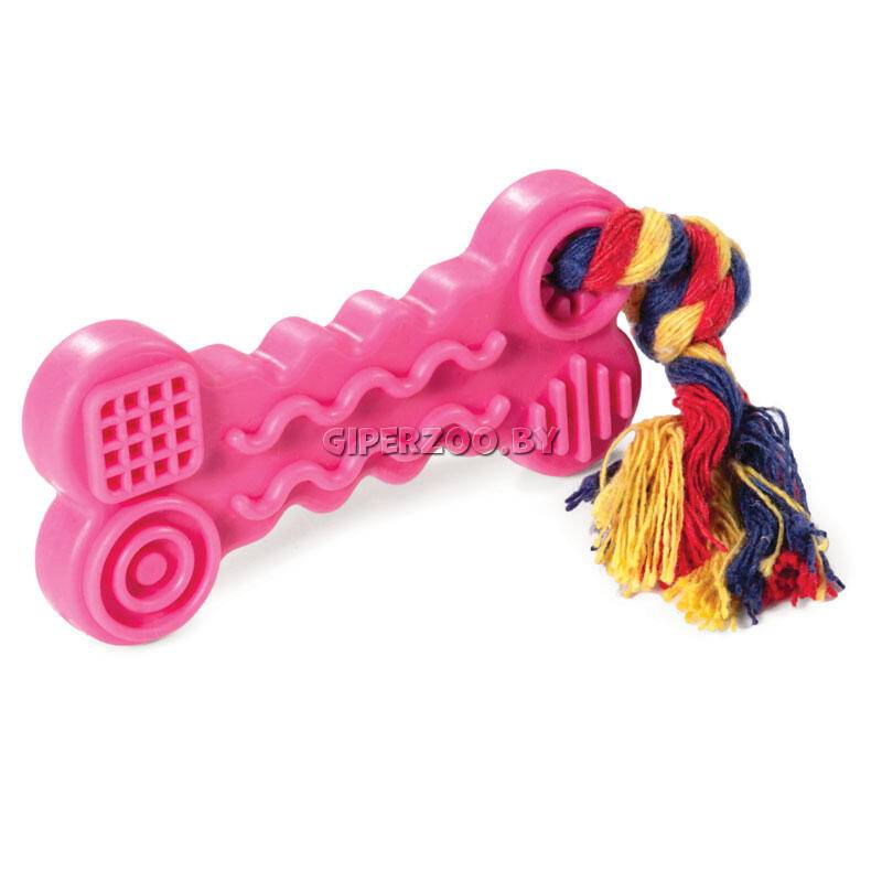 Triol Игрушка для собак Косточка с веревкой – незаменимый аксессуар для активных игр и развития вашего питомца. Изготовлена из прочной цельнолитой резины и натуральной хлопковой веревки, что обеспечивает долгий срок службы даже при интенсивном использовании.