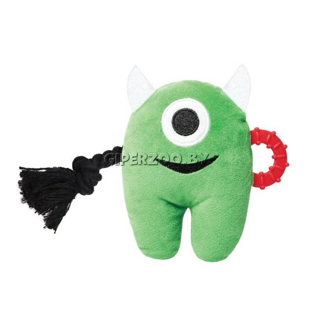 Голова монстрика выполнена из мягкого плюша, а крепкая веревка - из хлопка.