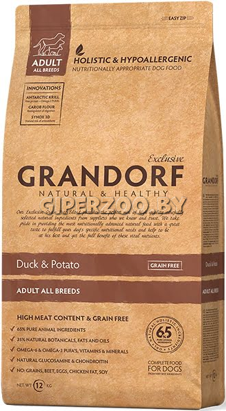 Grandorf Sensitive Care Holistic Duck & Potato All Breeds (Утка, батат), 3 кг - это гипоаллергенный беззерновой корм для взрослых собак всех пород старше 1 года.
