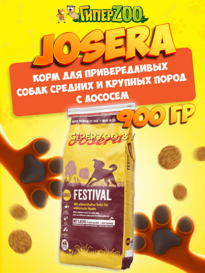 Josera Festival (лосось), 900 гр - подлинное вкусовое впечатление для вашей собаки: ведь этот корм содержит уникальную комбинацию из хрустящих гранул и изысканного порошкообразного соуса.