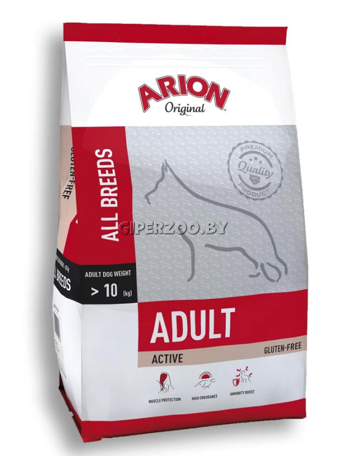 ARION Original Adult All Breeds Active (цыплёнок), 12 кг - сухой корм без глютена, повышает выносливость и поддерживает мышцы и суставы.Состав: С цыплёнком (30%), рисом (26%), животным жиром, горохом, гидролизованным животным белком, свекольным жомом, минералами, сушеным картофелем, рафинированной целлюлозой, сухими пивными дрожжами, рыбьим жиром, коллагеном, глюкозамином, хондроитинсульфатом, M.O.S. ФОС, бета-глюканы, растительные экстракты (Rosmarinus sp., Vitis sp., Curcuma sp., Citrus sp., Eugenia sp.).ARION Original не содержит глютена, рецепты не содержат пшеницу, рожь или ячмень. Наши ингредиенты приобретаются без ГМО, и не добавляются ненужные добавки, такие как ароматизаторы и красители.•Высококачественный животный белок и L-карнитин для поддержания мышечной массы и спортивного телосложения.•Специально разработан для оптимальной выносливости.•Дополнительные витамины С, Е, бета-глюканы и растительные экстракты поддерживают иммунитет.