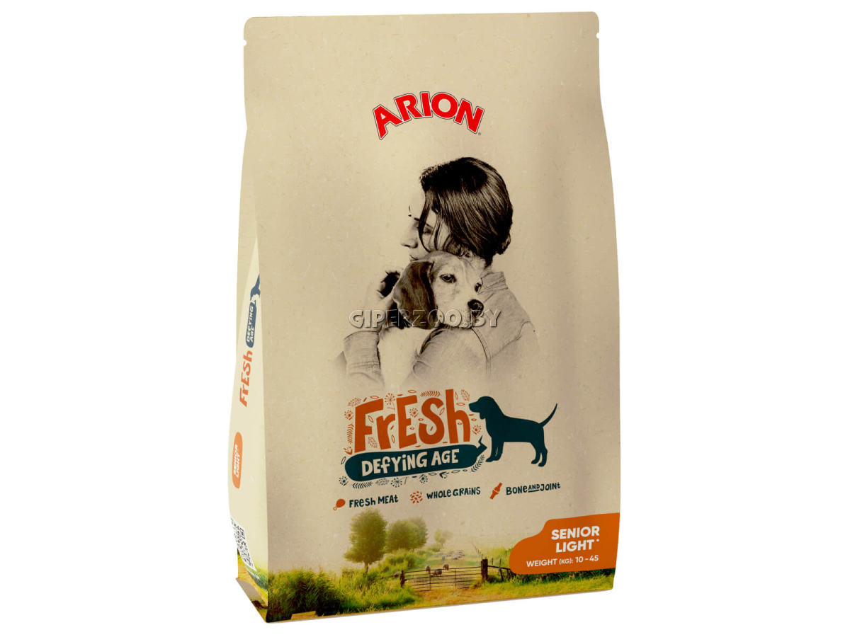 ARION Fresh Senior Light, 12 кг - был специально разработан для поддержки четвероногих друзей в пожилом возрасте и тех, у кого есть склонность к ожирению.Состав: Злаки (из них 14 % цельнозерновой пшеницы и 4 % овса), мясо и продукты животного происхождения (из них 4 % свежего цыпленка), продукты растительного происхождения (в том числе крапива, горечавка, бархатцы, ромашка, фенхель), масла и жиры, семена (льняное семя), минералы, дрожжи, L-карнитин, глюкозамин, хондроитин сульфат.Только самое лучшее достаточно для вашего лучшего друга навсегда. Вот почему наши диетологи отобрали для вашей собаки эти высококачественные ингредиенты и питательные вещества.•Натуральные растительные волокна помогают ему чувствовать себя сытым между приемами пищи.•L-карнитин для поддержания мышечной массы.•Глюкозамин и хондроитин для поддержки суставов.