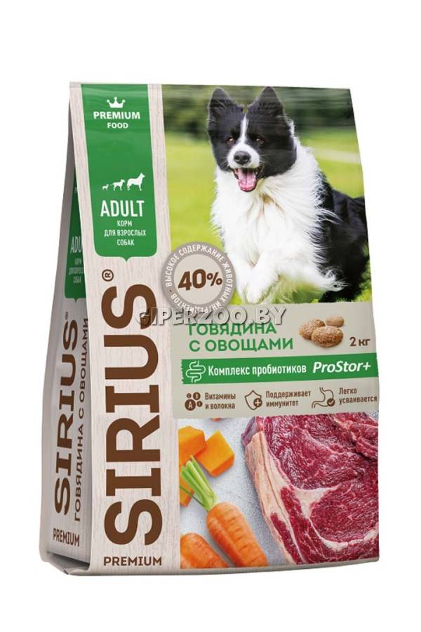 SIRIUS Adult (Говядина с овощами), 15 кг - сухой корм премиум класса для полноценного ежедневного рациона взрослых собак.