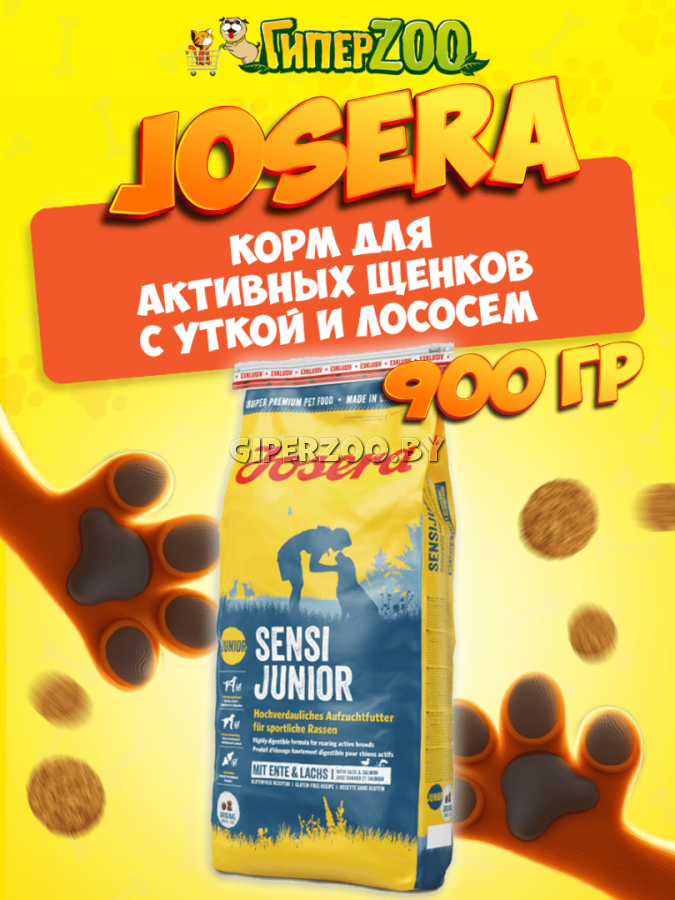 Josera SensiJunior (утка), 900 гр - корм супер-премиум класса содействует регулированию пищеварения и подходит для всех чувствительных и (или) спортивных молодых собак. Легкоусвояемую формулу завершает вкусная утка и отборная семга, что способствует хорошему пищеварению и уменьшению отходов.