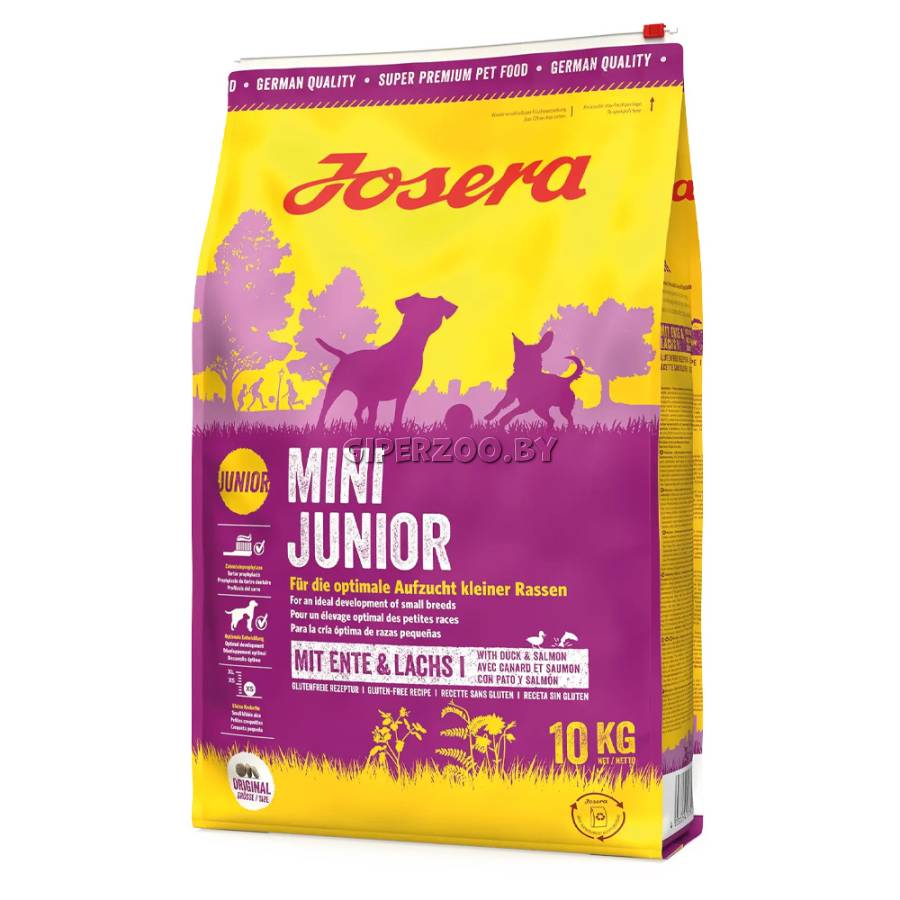 Josera MiniJunior для щенков и взрослых собак мелких пород, 15 кг JoseraMiniJunior - это сбалансированный рацион для взрослых активных собак миниатюрных и мелких пород,а также щенков старше 3 недель. Может использоваться суками во время беременности и лактации.Корм содержит ценные жирные кислоты, необходимые для здоровой кожи и блестящей шерсти. Ценные антиоксиданты, такие как витамин Е, С и таурин замедляют процесс старения клеток, а микроэлементы поддерживают правильное функционирование организма. Включает в себя изысканную утку и нежный лосось, легко усваивается и уменьшает количество экскрементов.