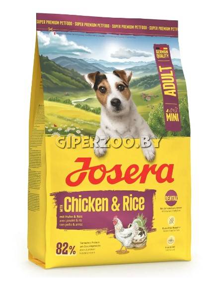 Josera Mini Adul (Курица и рис), 10 кг — это сбалансированный рацион для взрослых собак мелких пород.