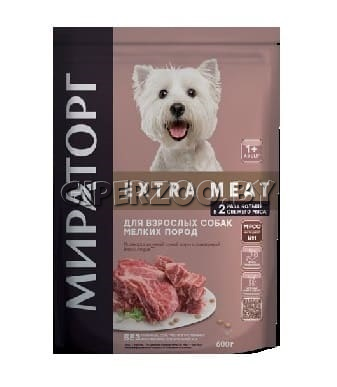 МИРАТОРГ Extra Meat для взрослых собак мелких пород, 600 гр - разработан с учетом особенностей небольших животных и хорошо усваивается, помогая питомцам вести полноценный образ жизни. Мелкие породы собак склонны к проблемам с пищеварением, поэтому в наших кормах содержатся такие натуральные ингредиенты, как мякоть свеклы и цикорий.