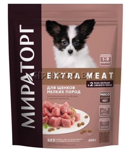 МИРАТОРГ Extra Meat для щенков мелких пород от 1 мес до 9 мес с телятиной, 600 гр - щенки мелких пород растут очень быстро, поэтому важно уделять их питанию много внимания.