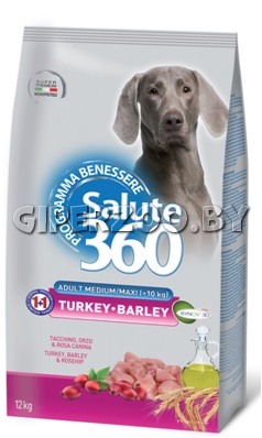 Pet360 Salute Adult Medium/Maxi (индейка, ячмень), 12 кг