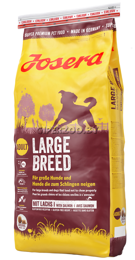 Josera Large Breed для активных собак крупных пород, 15 кгСбалансированный рацион для взрослых активных собак крупных пород. Корм имеет большие гранулы для комфортного жевания и легкого усвоения, обогащен повышенным количеством энергии. Крокеты способствуют развитию жевательных мышц и предотвращают быстрое проглатывание.
