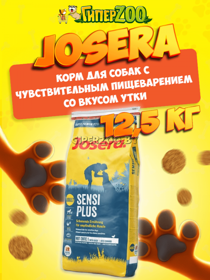JOSERA SENSI PLUS (24/12) сбалансированный легкоусвояемый рацион разработан специально для взрослых собак с чувствительным пищеварением и привередливых в питании. -специально разработанная формула с нежным мясом утки, оптимально подходит при непереносимости говядины, баранины, рыбы и пшеницы -содержит оптимальный баланс Омега-3 и Омега-6 ненасыщенных жирных кислот, витамин Е, биотин, метионин, цинк в легко усваиваемой органической форме, обеспечивающих здоровье кожи и шерсти, отличную работу иммунной системы, а также общее здоровье собаки -идеальное соотношение кальция, фосфора, витамина С способствует укреплению и поддержанию здорового скелета Состав: белок птицы сушеный (птица 16,5%, утка 12,0%); цельные зерна кукурузы; рис; свекольный жом; жир птицы; белок птицы гидролизованный; минералы; корень цикория, молотый (природный источник инулина). Аналитические составляющие: белок 24,0 %; Жиры 12,0%; Сырая клетчатка 2,3%; Сырая зола 7,0 %; Кальций 1,45%; Фосфор 1,0%; Натрий 0,4%. Пищевые