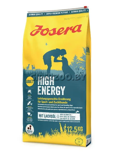 Josera High Energy Adult - это сбалансированный рацион для взрослых спортивных, племенных и рабочих собак, содержащий повышенное количество протеина. Корм поддерживает организм во время соревнований, тренировок и размножения. Продукт идеально подходит для кормящих сук на завершающем этапе щенности. Для здоровья сердца добавлены таурин и L-карнитин, за активный обмен веществ в тканях отвечают антиоксиданты.