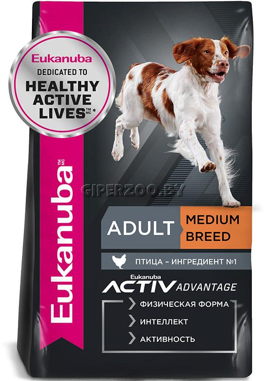 Eukanuba Adult Medium Breed (Курица), 3 кг - корм сухой полнорационный для взрослых собак средних пород весом от 11 до 24 кг от года и старше с птицей.