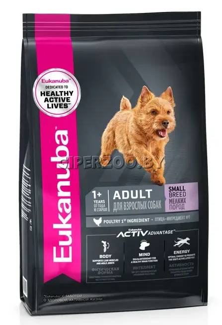 Eukanuba Adult Small Breed (Курица), 3 кг - корм сухой полнорационный для взрослых собак мелких пород весом до 10 кг от года и старше с птицей.