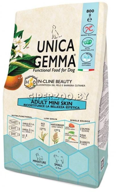 Unica Gemma Skin Adult Mini - это корм для собак мелких пород, обеспечивающий блестящую шерсть и поддерживает защитный барьерный слой кожи.