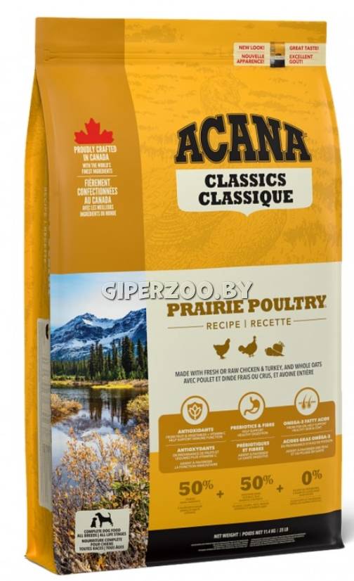 Рецепты ACANA™ тщательно продуманы от начала до конца с использованием вкусных и качественных ингредиентов. Благодаря сбалансированному соотношению 50/50 между богатыми ингредиентами из птицы и питательными фруктами, зерновыми и овощами рецепт ACANA Classics Prairie Poultry обеспечит вашей собаке сытный и питательный прием пищи, приготовленный из простых и полезных ингредиентов.