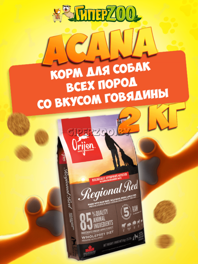 Orijen Regional Red Dog - это первоклассный сухой корм класса холистик для взрослых собак. Состав включает в себя богатые и натуральные ингредиенты, такие как красное мясо говядины, баранины, свинины, бизона и дичь. Этот корм богат белками и омега-3 жирными кислотами, способствующими здоровой коже, блеску шерсти и поддержанию мышечной массы. Сбалансированный состав также включает овощи, фрукты и травы, обогащенные витаминами и антиоксидантами, что укрепляет иммунную систему и общее благополучие. Без зерновых ингредиентов, Orijen Regional Red Dog подходит для собак с чувствительным пищеварением и аллергиями. Этот корм предоставляет вашей собаке сбалансированный и вкусный рацион, способствующий ее общему здоровью и активности.