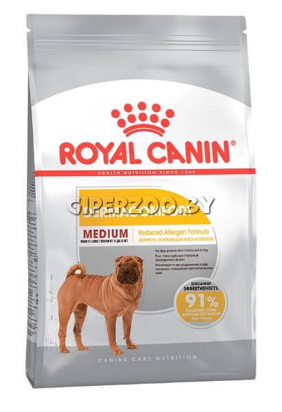 Royal Canin Dermacomfort Medium, 12 кг - для взрослых (старше 12 месяцев) и стареющих собак средних размеров (вес собаки от 11 до 25 кг).