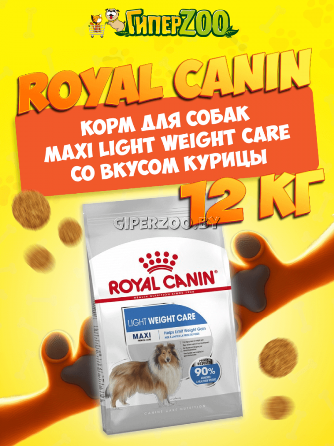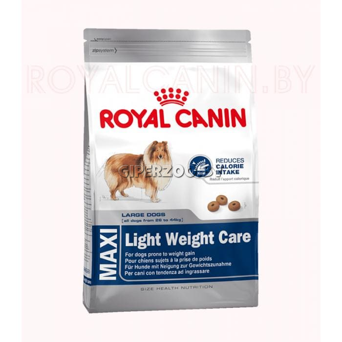 Royal Canin Maxi Light Weight Care корм д.кр.собак, 12 кг - полнорационный сухой корм для взрослых собак крупных размеров (вес собаки от 26 до 44 кг) в возрасте старше 15 месяцев, склонных к избыточному весу. Поддержание идеального веса помогает сократить количество потребляемых собакой калорий на 30%* при сохранении прежнего объема порции.