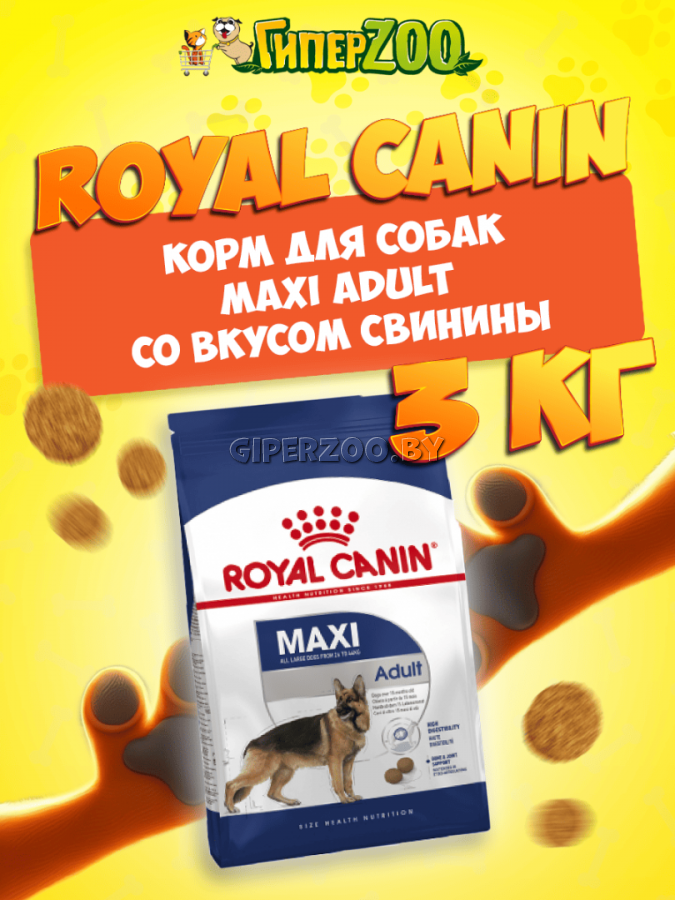 Royal Canin Maxi Adult корм сухой полнорационный для взрослых собак крупных размеров (весом от 26 до 44 кг) в возрасте от 15 месяцев до 5 лет. Потребности в питательных веществах собак крупных и мелких пород существенно различаются. Важно подобрать для собаки рацион с учетом ее размеров и связанных с ними физиологических особенностей. Из-за большой массы тела кости и суставы крупных собак подвергаются серьезным нагрузкам, поэтому им необходима дополнительная поддержка. Maxi Adult способствует сохранению оптимального, комфортного для собаки веса. Royal Canin Maxi помогает поддерживать здоровое пищеварение, а также обогащена жирными кислотами омега-3 (ЭПК и ДГК) для здоровья кожи. Состав: мука из зерновых культур, рис, дегидратированные белки животного происхождения (свинина), дегидратированные белки животного происхождения (птица), животные жиры, пшеница, изолят растительных белков*, гидролизат белков животного происхождения (вкусоароматические добавки), растительная клетчатка, минеральные вещества.