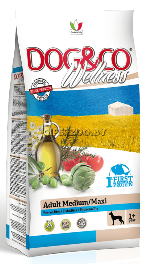 Adragna Dog&Co Adult Medium( рыба и рис),12 кг - полнорационный сухой корм для взрослых собак средних и крупных пород с рыбой и рисом.