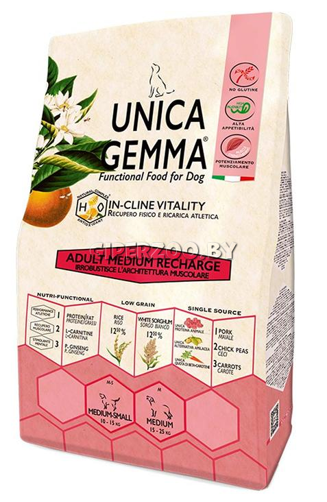 Unica Gemma Adult Medium Recharge (свинина и рис), 2 кг - функциональные крокеты для взрослых собак среднего-малого и среднего размера, подходящие для укрепления мышечной структуры.