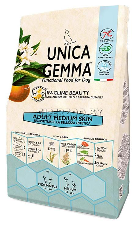 Unica Gemma Adult Medium Skin (лосоль и горох), 2 кг - функциональные крокеты для взрослых собак среднего размера для кожи и шерсти. Формула особенно подходит для обеспечения комфорта кожи благодаря калибровке и сочетанию питательных веществ, которые улучшают красоту шерсти и контролируют раздражение кожи.