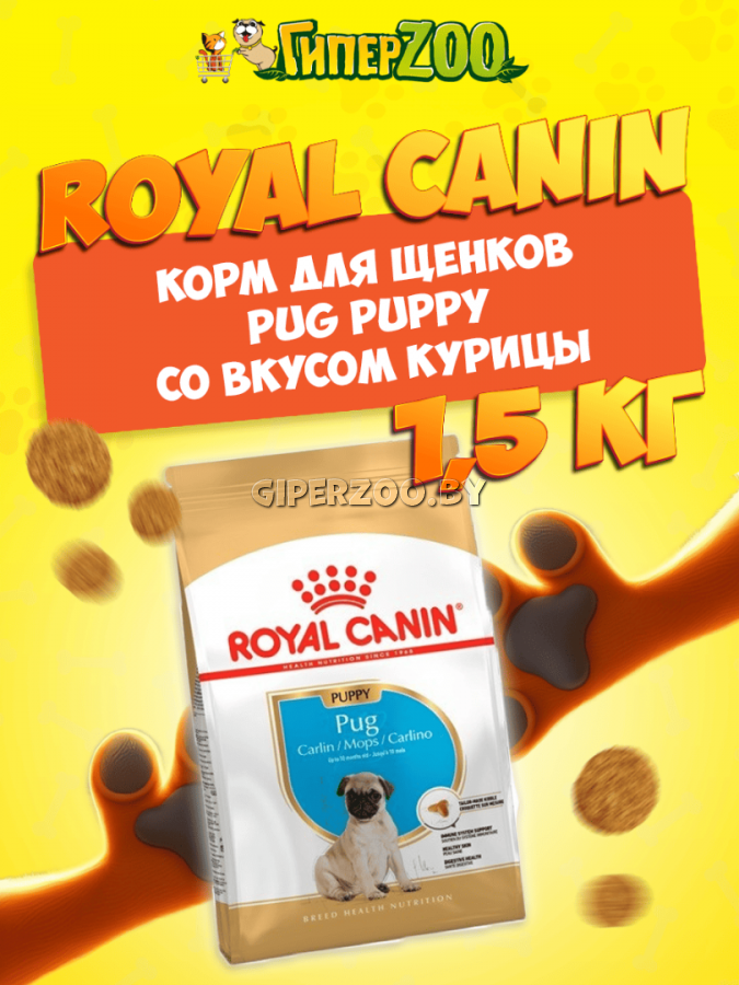 Royal Canin Pug Puppy, 1,5 кг - предназначенный для собак породы мопс в возрасте до 10 месяцев, специально разработан с учетом их потребностей в питательных веществах.