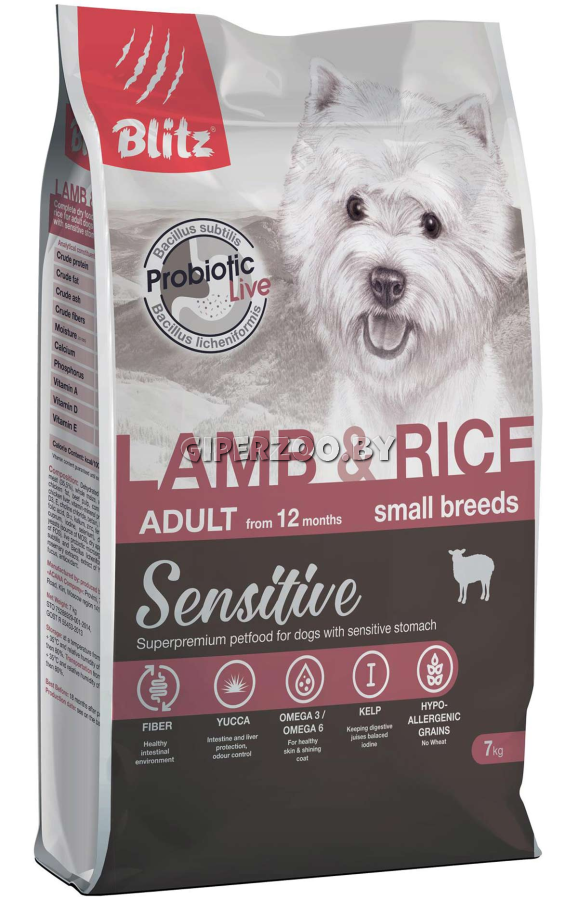 Blitz Sensitive Lamb & Rice Small Adult (ягненок, рис), 7 кг - комплексный сбалансированный сухой корм супер-премиум класса, специально создан для взрослых собак мелких пород с чувствительным пищеварением.