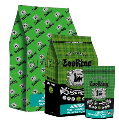 ZooRing Junior 3 (Молодой бычок, рис) — полноценный супер-премиум качества сухой корм для юниоров средних и крупных пород с 6-7 до 15-18 месяцев, в зависимости от породы.