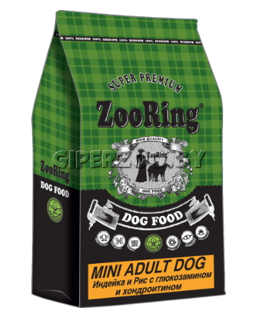 ZooRing Mini Adult Dog (индейка, рис), 10 кг – полноценный сбалансированный корм супер-премиум класса для взрослых активных собак маленьких пород, учитывающий потребность Вашего питомца в повышенной энергии.