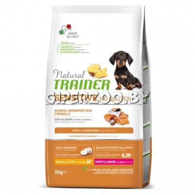 Сухой корм для собак Trainer Natural Sensitive No Gluten Mini Puppy&Junior (Лосось) -это полноценный и сбалансированный корм для щенков мелких и карликовых пород с чувствительным пищеварением.
