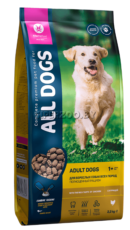 Он разработан на основе результатов последних исследований в области питания домашних животных, а также с учетом международных стандартов (AAFCO/FEDIAF). ALL DOGS идеально подходит в качестве полноценного питания.