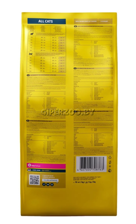 Он разработан на основе результатов последних исследований в области питания домашних животных, а также с учетом международных стандартов (AAFCO/FEDIAF). ALL DOGS идеально подходит в качестве полноценного питания.