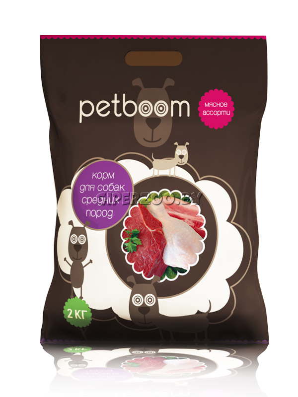 Petboom мясное ассорти, 20 кг - корм сухой для взрослых собак средних пород мясное ассорти.