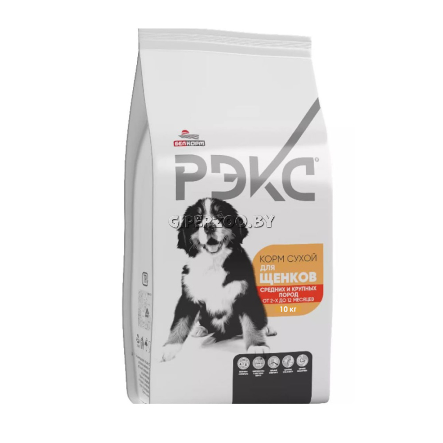 Корм сухой Рэкс для щенков средних и крупных пород, 10 кг - это корм разработан специально для удовлетворения потребностей растущего организма. Содержит все необходимые компоненты, которые обеспечивают правильное развитие скелета и мускулатуры, формируют крепкие зубы и кости, здоровую шерсть.