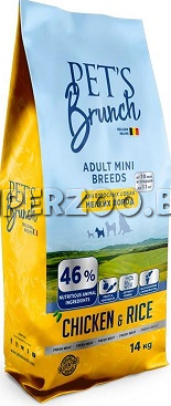 Pet's Brunch для мелких пород (курица),14 кг - это сбалансированный рацион для взрослых собак мелких пород, который содержит оптимальное соотношение протеинов и углеводов, а также необходимое количество аминокислот, витаминов и минералов.