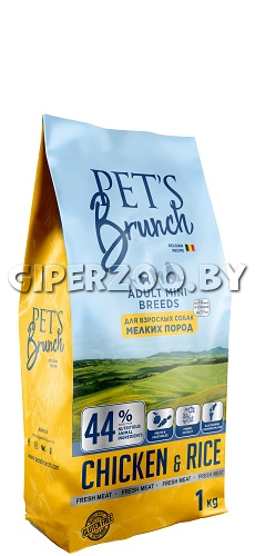 Pet's Brunch для мелких пород (курица), 1 кг - это сбалансированный рацион для взрослых собак мелких пород, который содержит оптимальное соотношение протеинов и углеводов, а также необходимое количество аминокислот, витаминов и минералов.