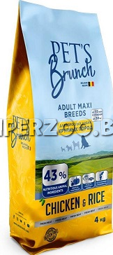 Pet's Brunch для крупных пород (курица), 4 кг - рацион с комплексом питательных веществ для взрослых собак крупных пород, который содержит оптимальное соотношение протеинов и углеводов, а также необходимое количество аминокислот, витаминов и минералов.