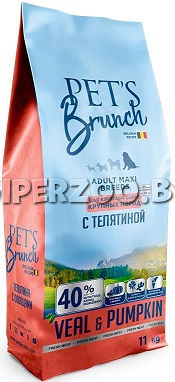 Pet's Brunch для крупных пород (телятина), 4 кг - полнорационный корм с мясом телятины и тыквой для взрослых собак крупных пород, который содержит оптимальное соотношение протеинов и углеводов, а также необходимое количество аминокислот, витаминов и минералов.