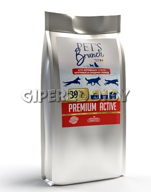 Pet's Brunch для активных крупных и средних пород (рыба), 14 кг - полнорационный корм с комплексом питательных веществ для взрослых активных, в т. ч. рабочих, собак крупных и средних пород.