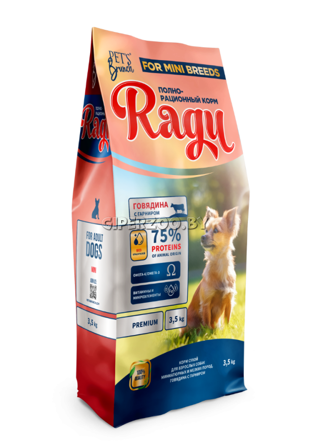Полноценный рацион для взрослых собак мелких пород с разным уровнем активности. Уникальная рецептура на основе мяса говядины, риса и овощей гарантирует хорошую поедаемость и высокую усвояемость. Питательные вещества в сбалансированной пропорции поддержат иммунитет вашей собаки, а умеренное содержание жира сохранит оптимальный вес питомца. Состав: мясо говяжье (сырое), дегидратированное мясо и мясопродукты, жир домашней птицы, рыбий жир, гидролизат из мяса, гемоглобин, рис, горошек, кукуруза и продукты её переработки, рожь, растительные масла, яблоки, тыква, морковь, экстракт фенхеля, меласса и жом из сахарной свеклы, дрожжи (источник пребиотиков), глицерин, ферменты, натрия хлорид, витамины, микроэлементы, антиоксиданты, сорбат калия.