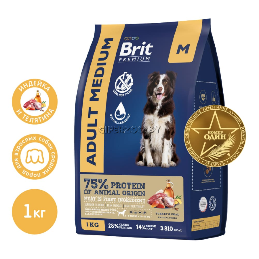 Brit Premium Dog Adult Medium (Индейка и телятина),1 кг
