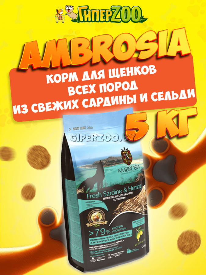 Ambrosia Mediterranean Puppy (сардина, сельдь), 5 кг