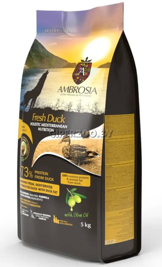 AMBROSIA Mediterranean Adult All Breeds (Утка) сухой монопротеиновый корм взрослых собак с чувствительным пищеварением, свежая утка.
