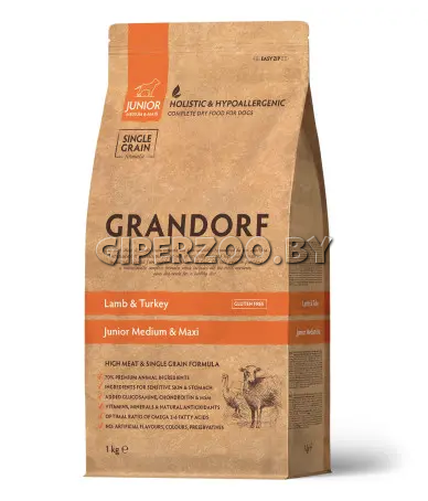 Grandorf Junior Medium & Maxi (Ягненок и индейка) - это гипоаллергенный корм для юниоров в возрасте от 4 месяцев, беременных и кормящих сук средних и крупных пород. Рацион идеально подходит для нежной пищеварительной системы питомца, содержит большое количество протеинов, полезных жиров, витаминов и аминокислот, которые способствуют здоровому росту и развитию.
