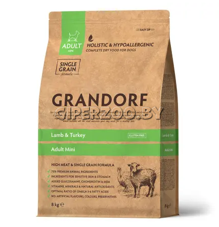 Grandorf Dog Lamb&Turkey Mini сухой корм для взрослых собак мелких пород, с ягнёнком и индейкой. Высокое содержание протеинов, полезных жиров, аминокислот и витаминов обеспечат необходимой энергией собак мелких пород. 70% мяса в составе.